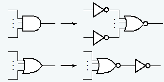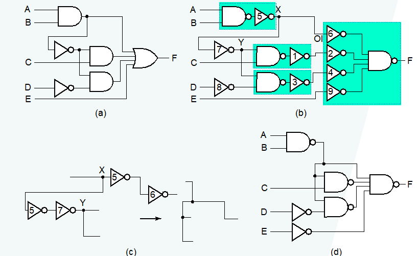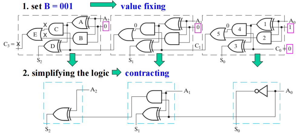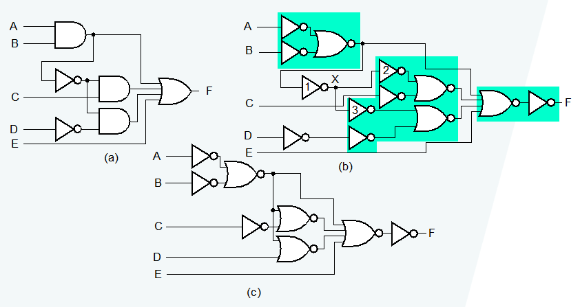 我们可以通过使用类似给定电路的工艺,随后“压缩”成更简单的电路(比如利用值固定 (value fixing)、传输 (transfer) 和逆转输入 (inverting on its inputs) 等方法