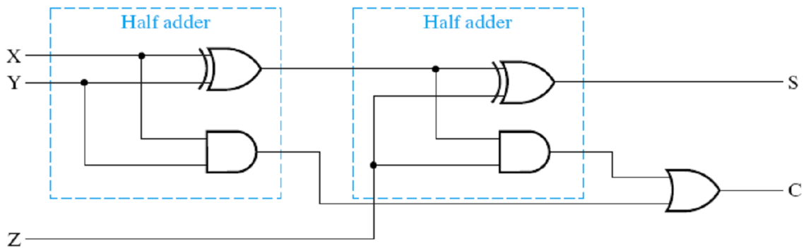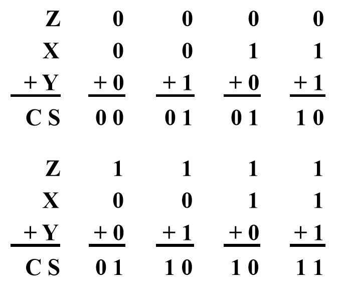 两个 k 位数的加法:\(X_{k-1}\dots X_0 + Y_{k-1}\dots Y_0 = S_{k-1}\dots S_0\)