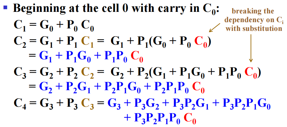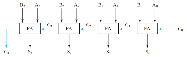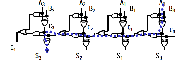 - 用于 4 位行波加法器: