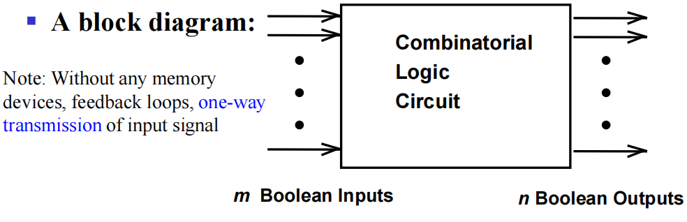 组合逻辑电路 (combinational logic circuit):逻辑门的输出是只和当前输入有关的函数的电路,它包括: