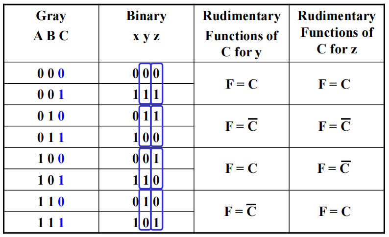 - \(n\) 个开关函数,每个函数将 \(2^m\) 种输入组合映射到一个输出,使得当前输出值仅取决于当前输入值