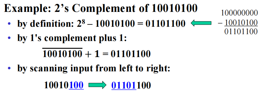 - 从最低位开始,从低到高扫描,遇到第 1 个‘1’后,这个‘1’后面所有的位均取反,即 \(0 \rightarrow 1, 1 \rightarrow 0\)
