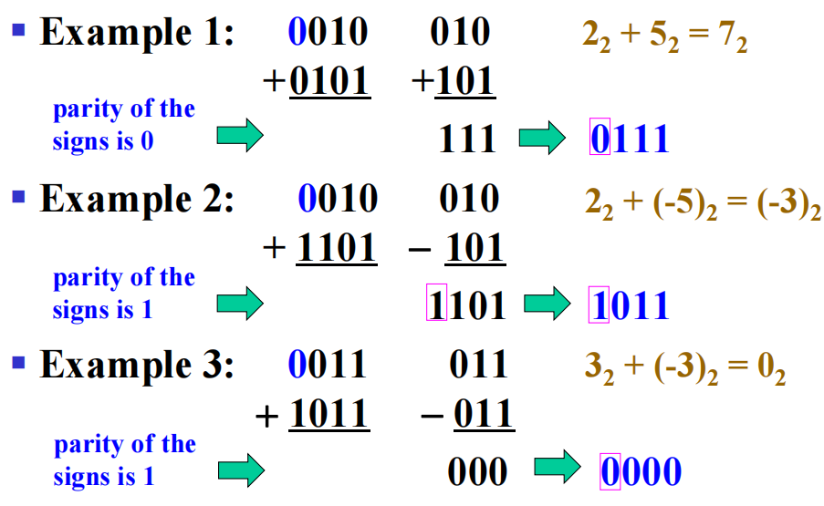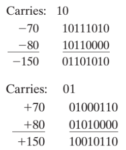 - 如果两数符号相同,但结果的符号与两数不同,表明发生溢出