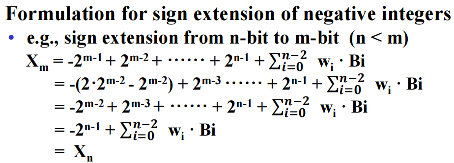 符号扩展 (sign extension):根据补码表示法的规则,在最高位后添加数字