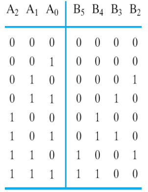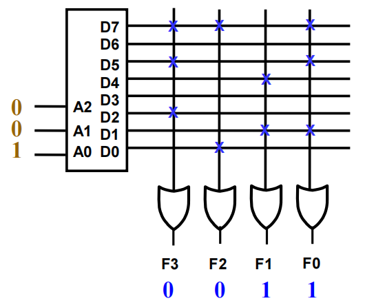 🌰:如果输入为 \((A_2, A_1, A_0) = 001\),那么输出位 \((F_3, F_2, F_1, F_0) = 0011\)