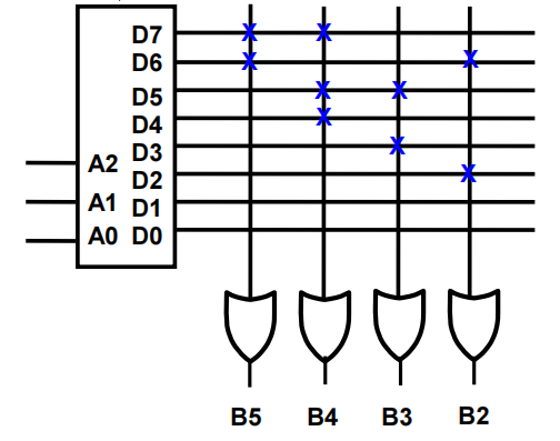 根据结果,我们采用 \(2^3 \times 4\) ROM,框图如下: