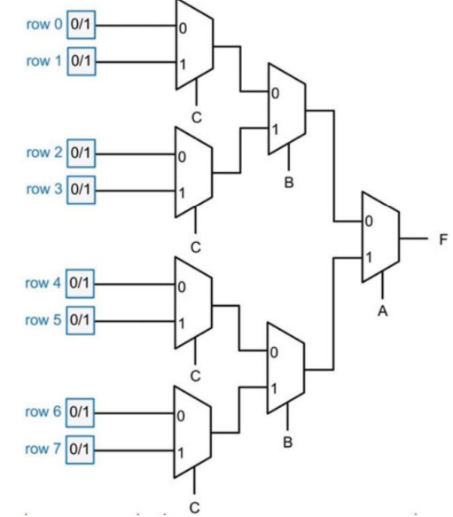 🌰:用 7 2-1MUX 形成树状结构,实现 3 输入 LUT
