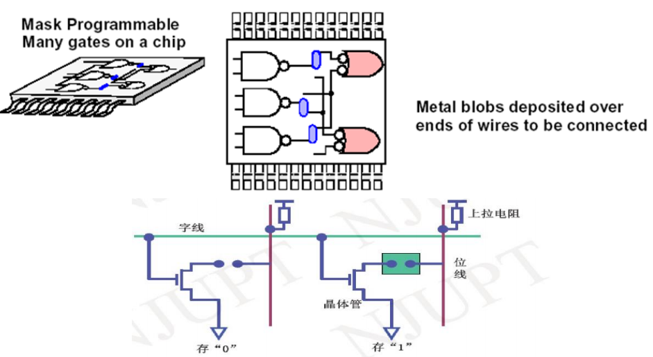 • 只读存储器 (read only memory, ROM)与门固定阵列的和或门可编程阵列