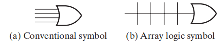 • 可编程或门阵列使用单线,表示对或门的所有输入