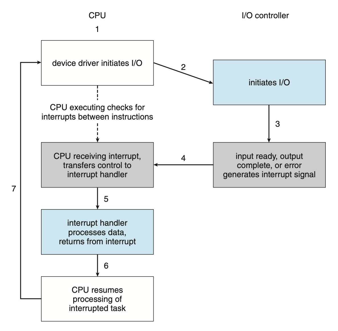 - 可屏蔽的中断:在执行必须不被中断的关键指令序列之前,CPU 可以将其关闭,被设备控制器用于请求服务