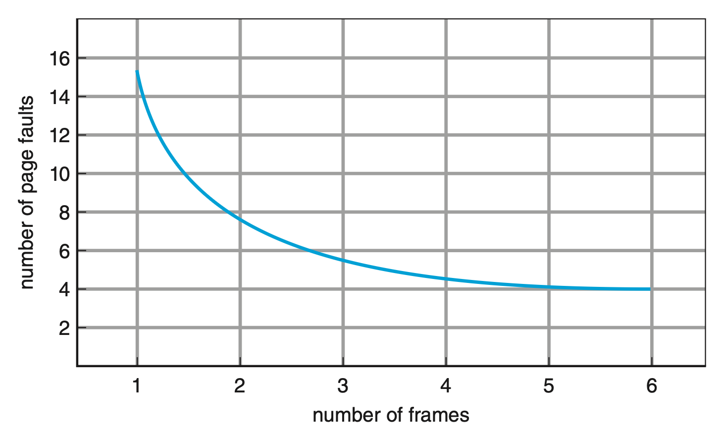 effective access time = (1 − \(p\)) × \(ma\) + \(p\) × page fault time