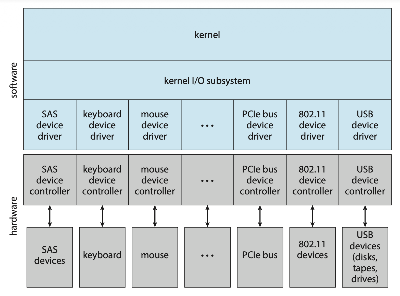 - 虽然 I/O 设备所执行的物理操作通常是异步的(需要不同或不可预测的时间