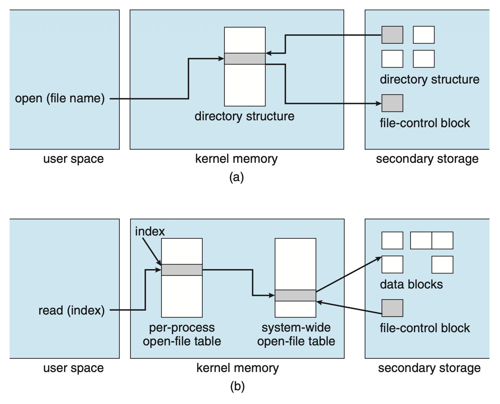 - 一旦找到该文件,FCB 将被复制到内存中的系统级打开文件表中