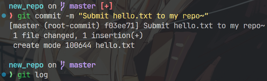 git commit -m "some message"提交暂存区内的文件,创建了一个包含消息的新提交(也可以认为是一份「快照」或「存档」 ) ,此时本地仓库中便有了这份提交的记录,并且会对它进行跟踪。 - 可用